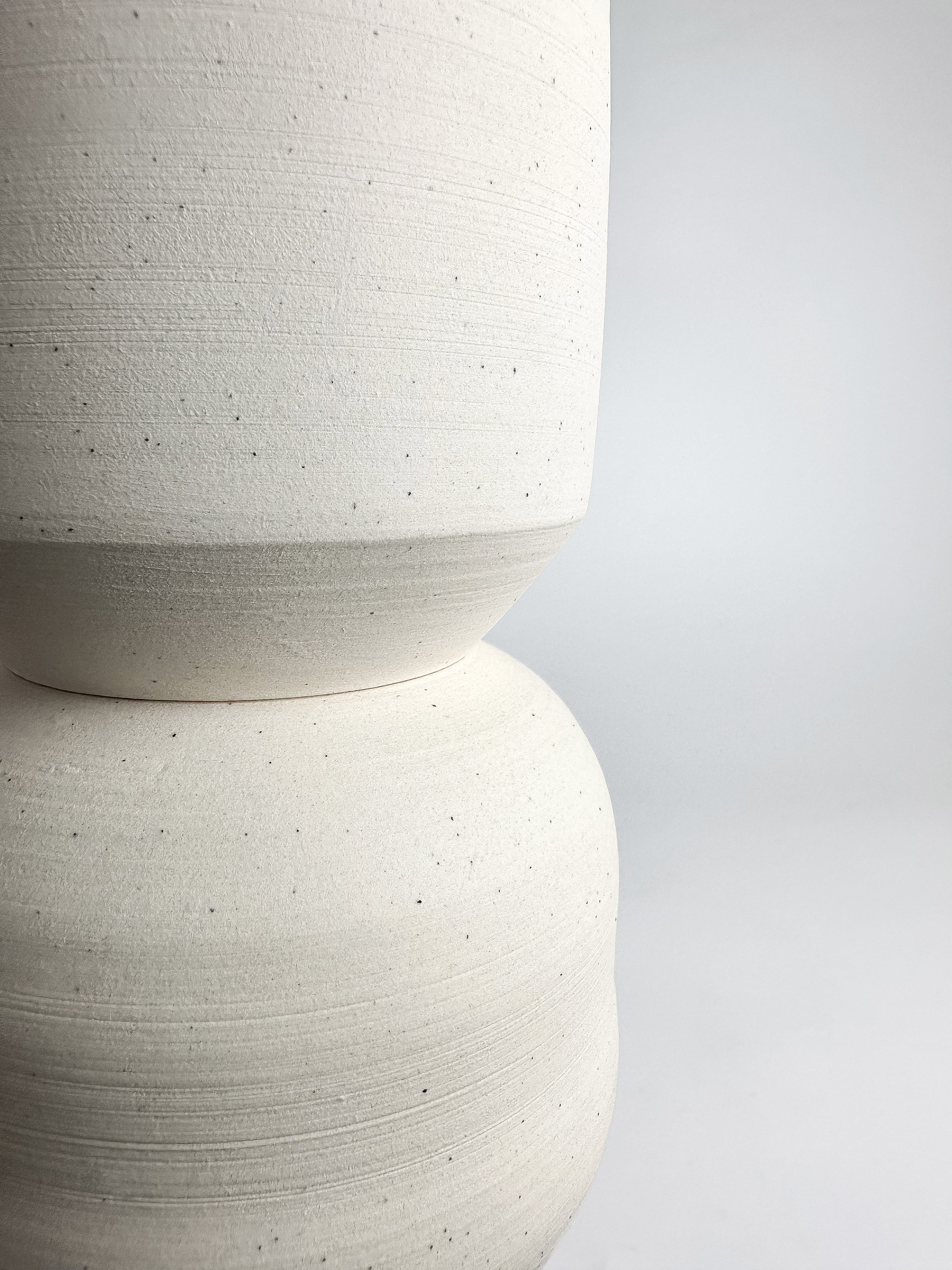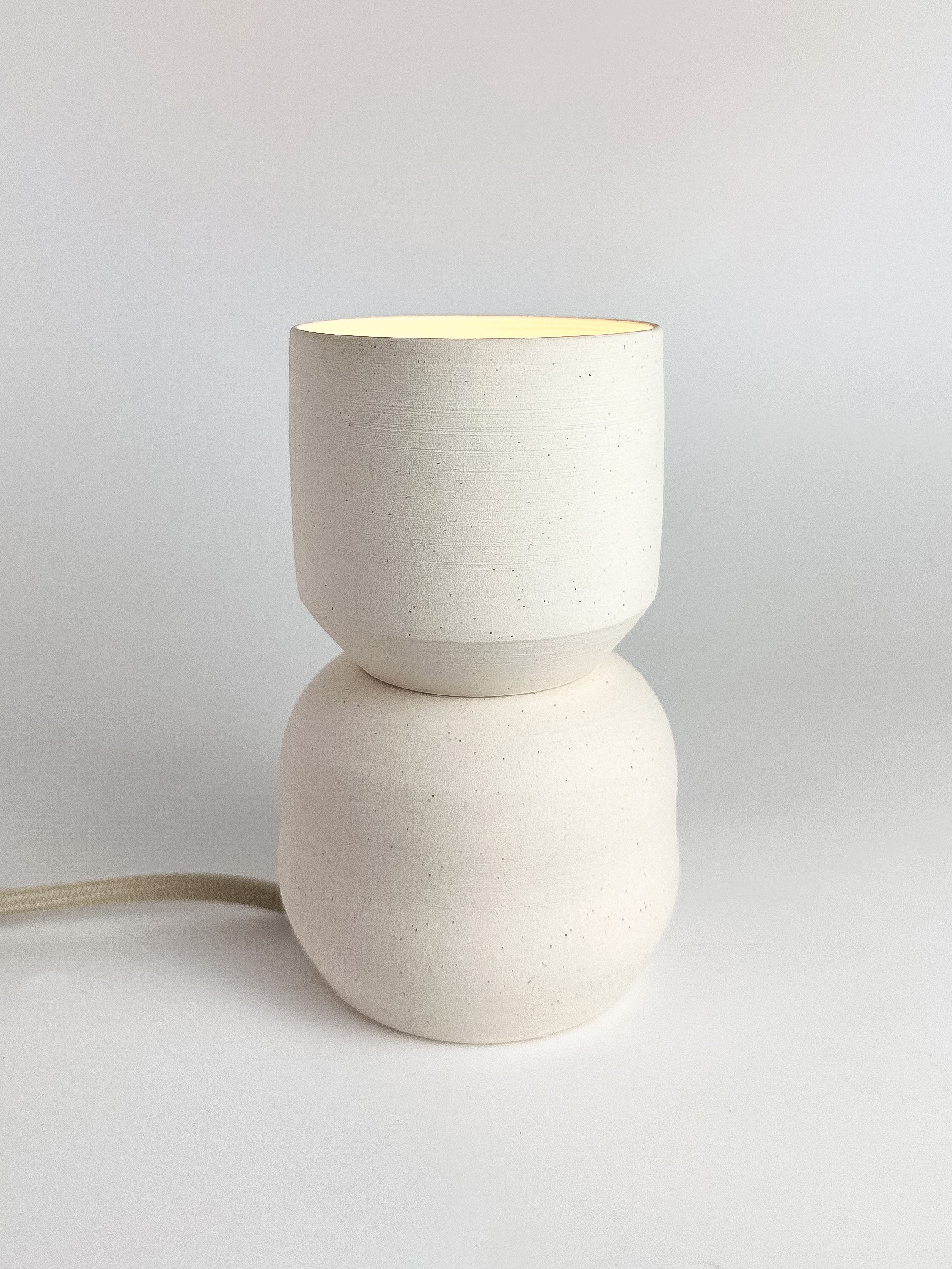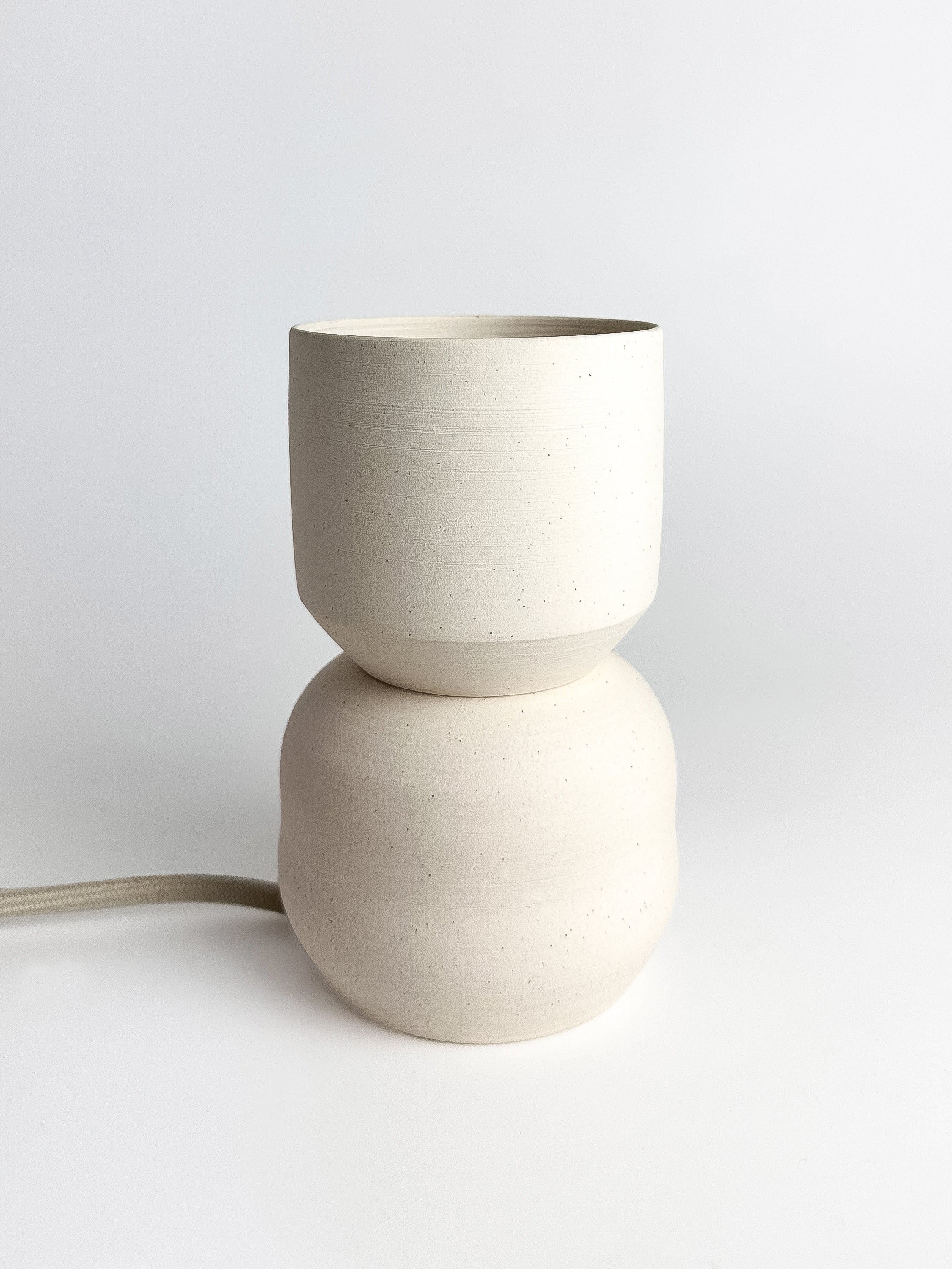 This nightlight is a one-of-a-kind handmade stoneware lamp. Both the base and shade are a speckled natural white stoneware.